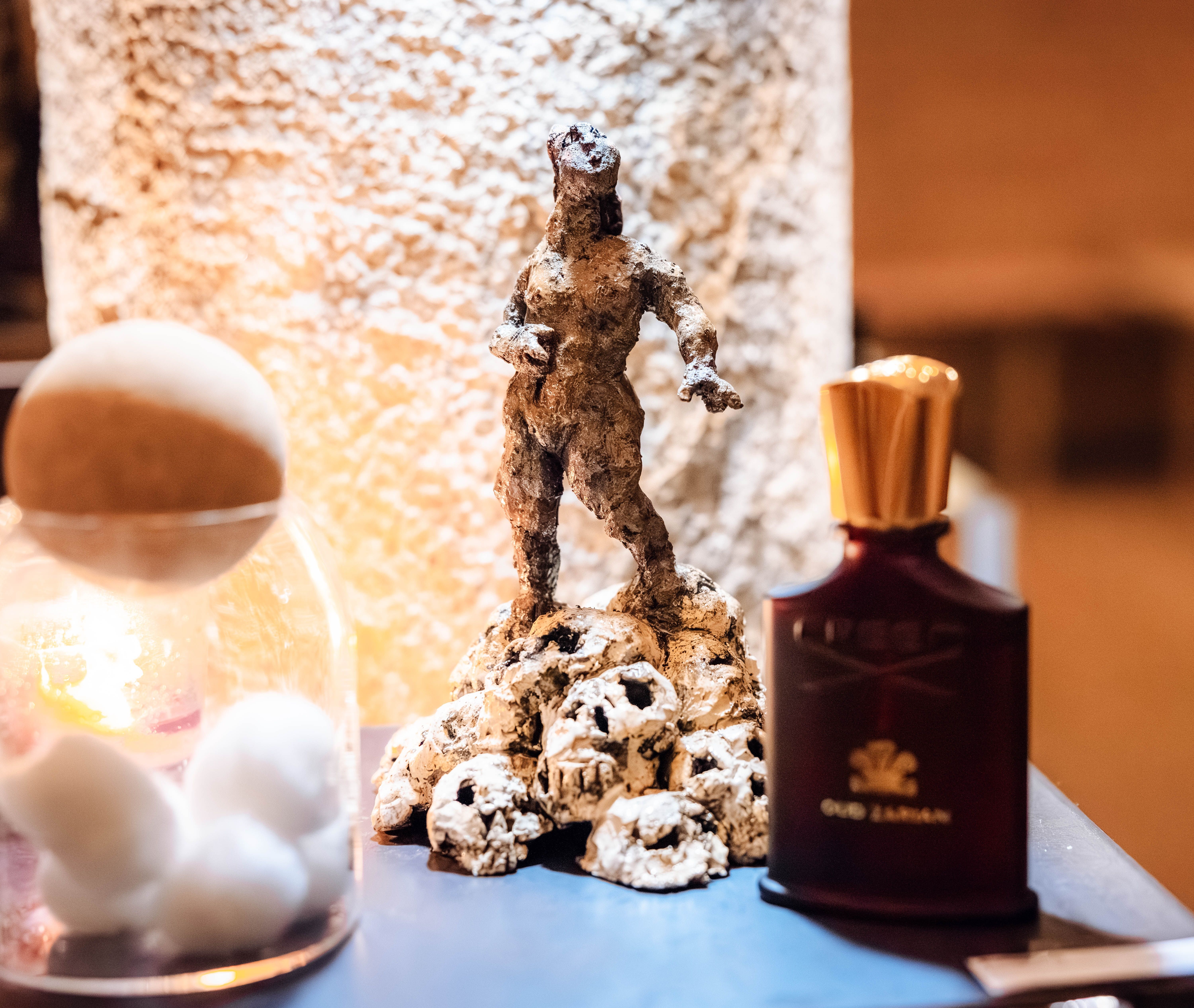 In der stimmungsvollen, rustikalen Atmosphäre dieses besonderen Ortes trafen die Skulpturen des zeitgenössischen Künstlers Hans Morhard auf kuratierte Düfte aus der Welt von BEX – Be Exclusive.